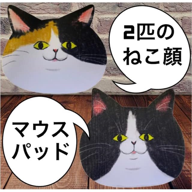 パソコン用ネコ顔マウスパット。<br/> 三毛猫タイプ。<br/> 選べる2種類<br/> プロのイラストレーターさんによる当社オリジナル作品。<br/> 現在、商標権取得中。<br/> サイズは職場や自宅で使用しやすいちょうど良いサイズ。<br/> 【 マウス使用部分 高さ約17cm×横幅約23cm】<br/> 【耳の部分まで入れると高さ約20cm】<br/> 表面は防水加工、飲み物や汗など拭き取ることができて衛生的です。<br/> 裏面はV時凹凸があり、あらゆるデスクで使用してもずれる心配がありません。<br/> おしゃれで可愛いので、メガネ置きや小物置き、コースターなどにも使えます。<br/> カフェ屋さんなどでコースター代りに使用するのもおすすめ。<br/> 注意事項!!顔まわりはハンドメイドカットの為、よく見ると若干の凹凸があります。 事前にご了承ください!!