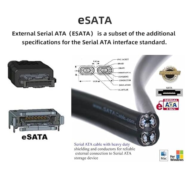 このeSATA HDDケーブルを使用して、OptiPlexやMacなどのUSB対応コンピューターやノートパソコンをSATAドライブに簡単に接続できます。