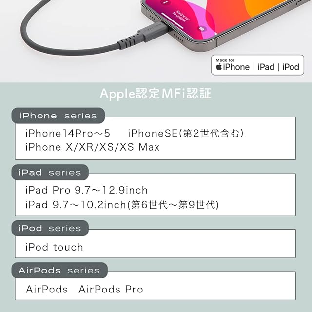 MOTTERU(モッテル) USB-C to Lightning シリコンケーブル Power Delivery対応 PD最大60W Mfi認証 しなやかでやわらかい 絡まりにくく断線に強い 各種iPhone対応 シリコンケーブルバンド 付属 1.0m アーモンドミルク MOT-SCBCLG100-AM | AVENIR
