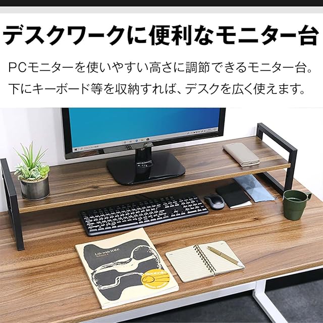 ✅【デスク上をスッキリ有効活用】 PCを使わないときはキーボードをモニター台の下に収納でき、モノを書いたりペンタブを使う作業の時などにスペースを確保できます。 ✅【幅広デスクが無駄なく使える】 幅が100cmあればモニターの2台使いでもゆったりと収納でき、デスク上を広々と使えます。モニター台の下も広々としたスペースができるので、周辺機器や文房具を収納できて作業しやすくなります。