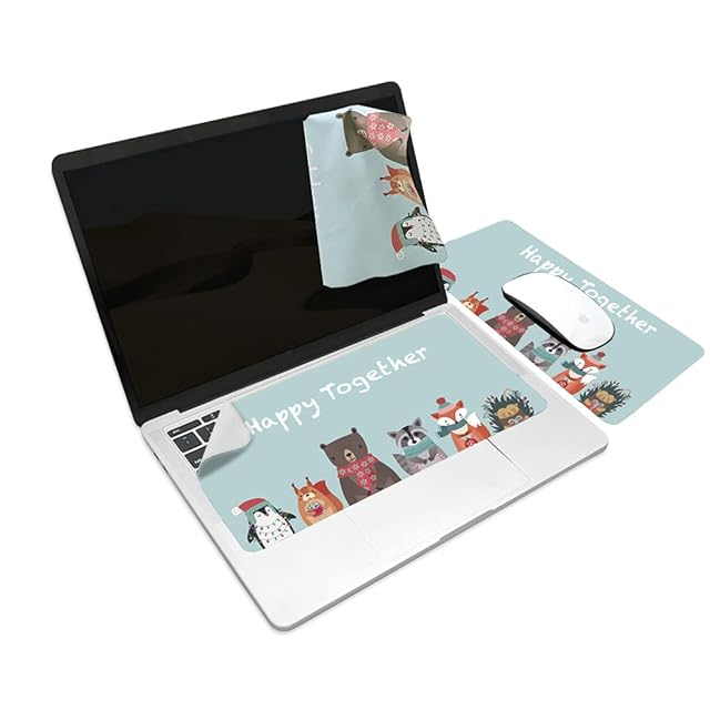 SenseAGE x ekax 3-in-1 マウスパッド キーボードカバー 液晶画面拭き メガネやカメラレンズにも使用可能 マルチ機能付き 水洗い 防塵カバー [28cm×15cm] -Happy Together