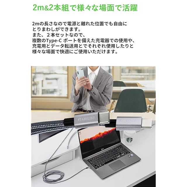 ✅【2m&2本組で様々な場面で活躍】 2mの長さなので電源と離れた位置でも自由に取り回しができます、 また2本セットで場所や用途によって使い分けが簡単な 充電コード です