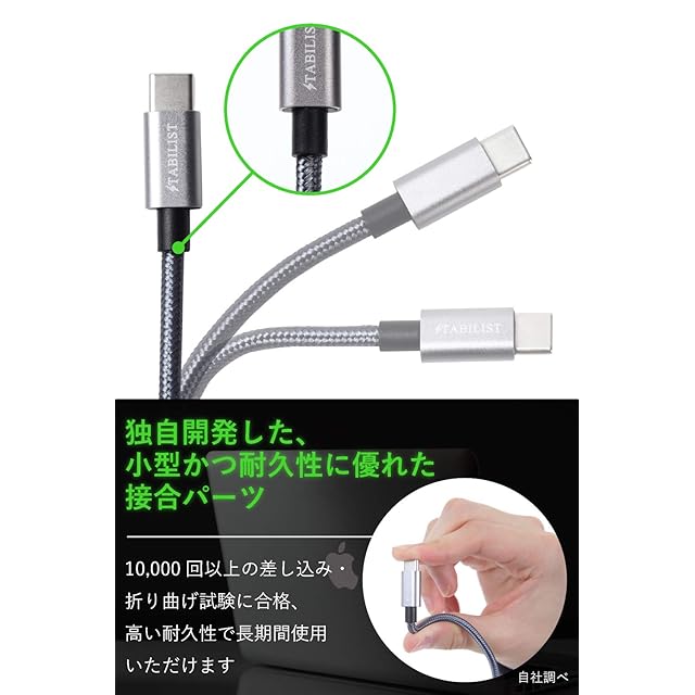 ✅【高い強度を誇るナイロン+アルミ合金+PVC製ケーブル】 10,000回以上の折り曲げ・差し込み試験に合格、 高い耐久性で長期間使用頂けます