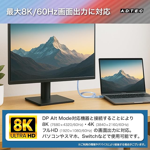 【高速転送対応】:最大40Gbpsのデータ転送と8K/60Hz映像転送対応