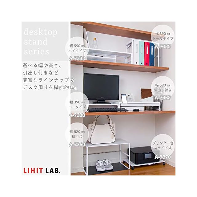 【仕様】モニター台として人気の590mm幅机上台に便利な引出しが付きました。