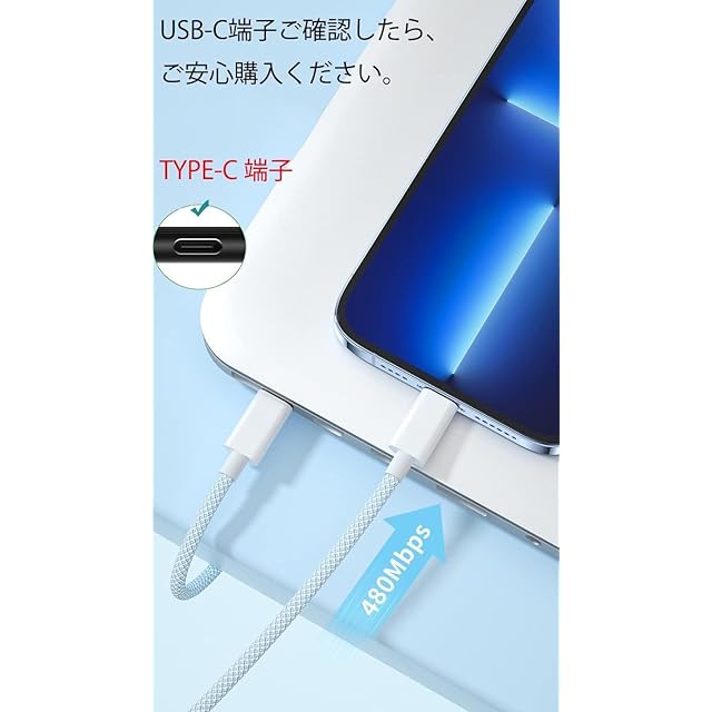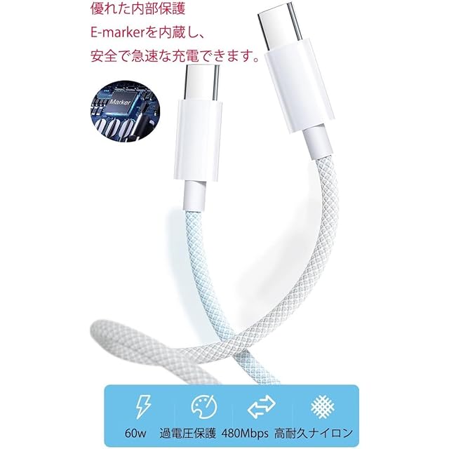 【USB C to USB C ケーブル】USB-Cポート付きのデバイス(スマホ、タブレット)をUSB-Cポート付きのデバイス(パソコン、チャージャー、モバイルバッテリー)に接続するケーブルです。 【安全重視のこだわり設計】このtypec ケーブルは各種の上質素材を使用した安全重視設計により3Aの高出力を流せしかも過充電と発熱などを防ぎ、安定性の高い急速充電と大切な機器の損傷防止を実現します。