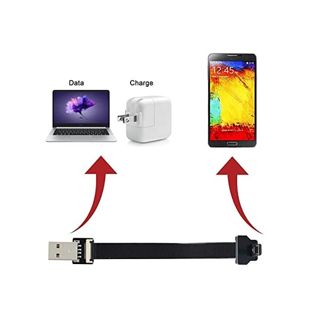 NFHK アップアングル USB 2.0 Type-A オス - マイクロUSB 5ピン オス データ フラット スリム FPC ケーブル FPV & ディスク & 電話用 20CM | AVENIR