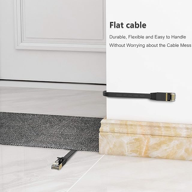 Senetem LANケーブル 0.5m CAT7ウルトラフラットLANケーブル カテゴリ7 高速 lanケーブル 10Gbps/600MHz CAT7準拠 イーサネットケーブル RJ45 ツメ折れ防止 やわらか スリム ブラック モデム ルータ PS3 PS4 PS5 Xbox等に対応 | AVENIR
