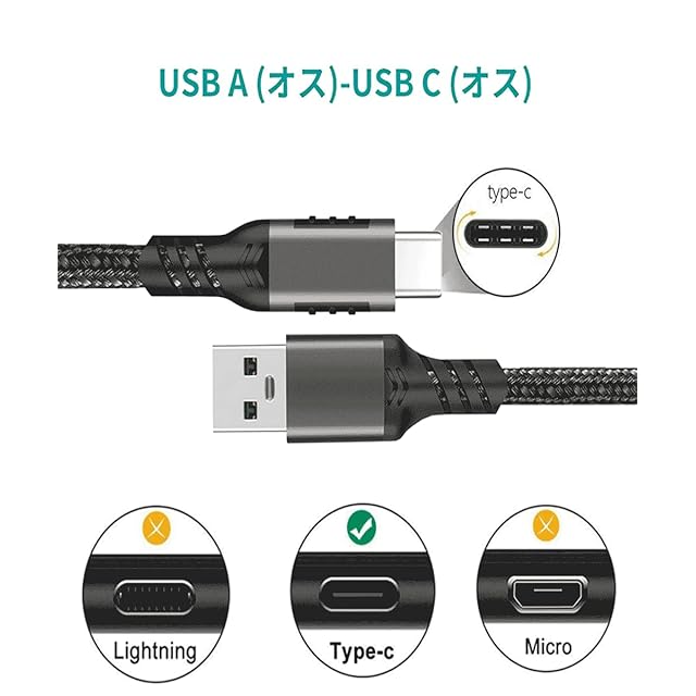 【優れたの高耐久性】高耐久ナイロン編み層のType-c ケーブルは、10000回以上の厳しい折り曲げテストにクリアしており、コネクタ部分にもアルミニウム合金製で繰り返しの抜き挿しても耐えられて使いやすい