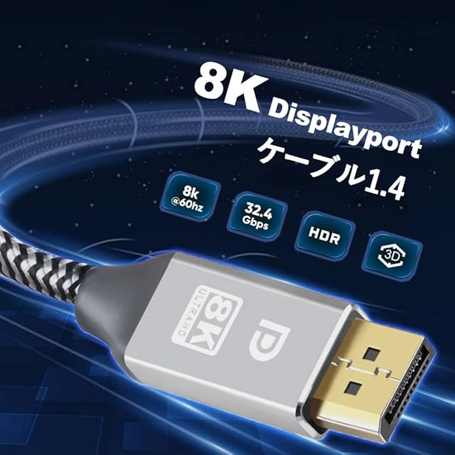 8K DisplayPort ケーブル 1.5M 1.4規格240Hz対応 ディスプレイポート ケーブル dpケーブル HDR対応 8K@60HZ/4K@144Hz/2K@240Hz 32.4Gbps ハイスピード DPケーブル ナイロン編み PC テレビ PS5 PS4 PS3 対応 (1.5M) | AVENIR