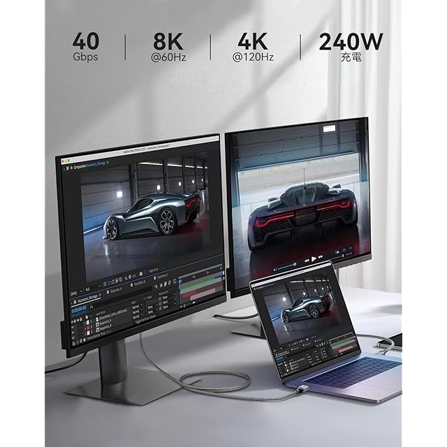 【8K@60HzのHD体験】本 Type-C 1M 充電ケーブル は、8K@60Hzの超高解像度画質出力をサポートし、衝撃的な視覚体験をもたらします。また、さまざまなディスプレイのニーズに適応するために、4Kとの下位互換性も備えています。仕事、娯楽、創作のいずれの場合でも、より高品質の画像伝送を提供し、繊細な画像効果を楽しむことができます。