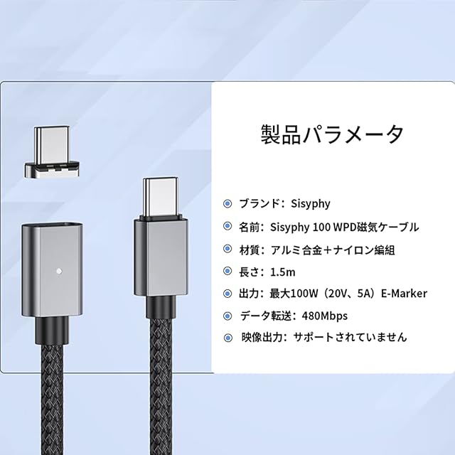 【強力なマグネット】Mcbookやその他のUSB-Cデバイスの充電中に外れてしまわないよう、磁力の強い最新マグネットを採用しました。 もちろん、電源ケーブルに過度の負担がかかった場合は外れるようになっています。