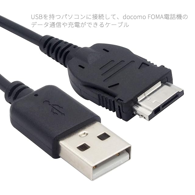USBを持つパソコンに接続して、docomo-FOMA電話機の充電ができるケーブル