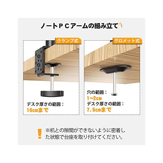 【組立・取付簡単】2種類の組み立てる方法があります。デスクの天板を上下から挟み込むクランプ式と、ボルトを通して挟み込むグロメット式両方対応しています。