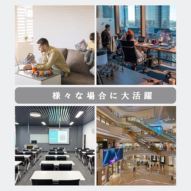 接続簡単:刺すだけで接続、抜いて離れで複雑な操作不要。コンパクトな形は持ち運びやすい、教室、ホテル、展示会、会議室で活用できる。