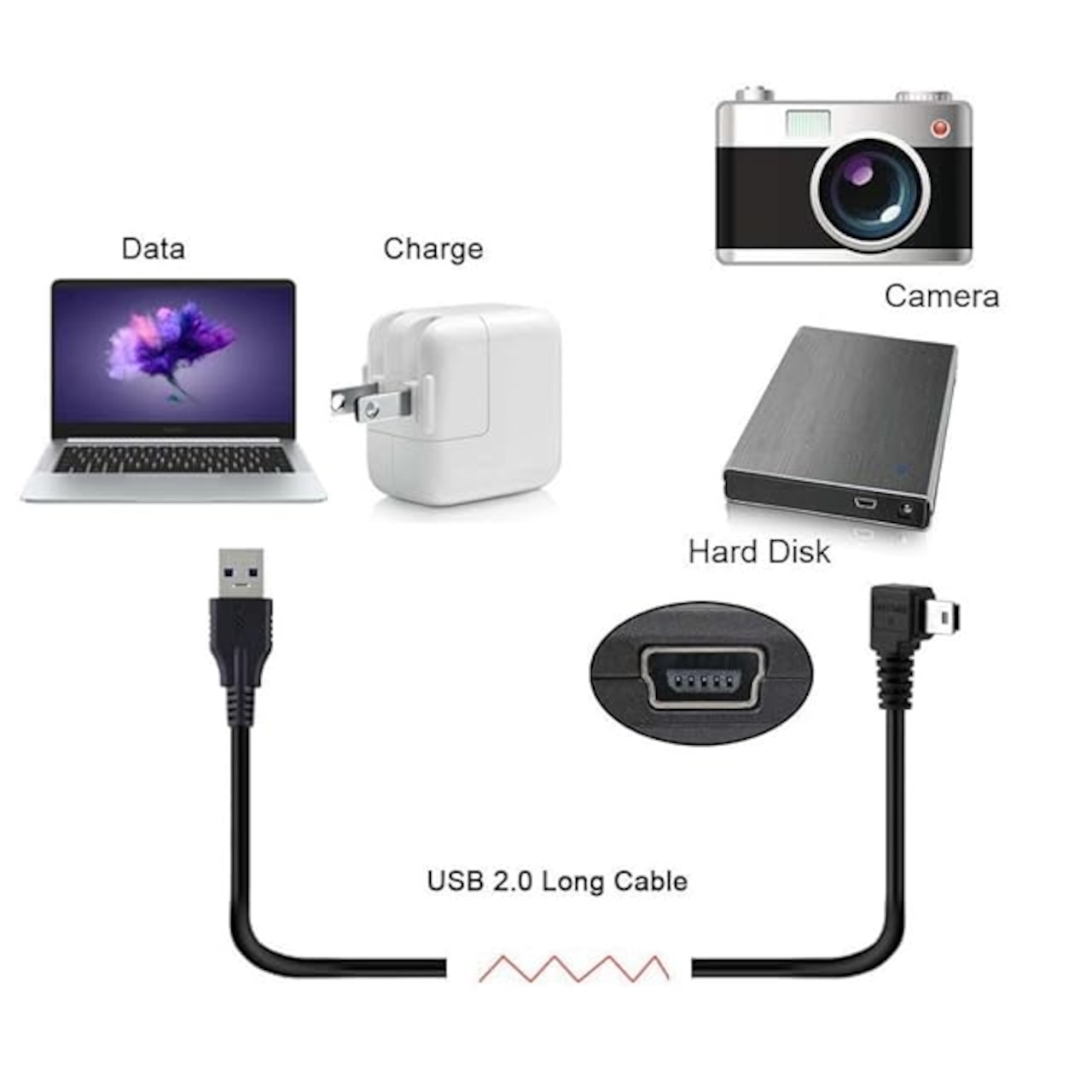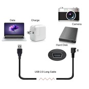 1) Mini USB-B 5ピンオスは90度角度タイプです。 <br>2)斜めタイプなので、ポート周辺のスペースが限られていてもメスポートに接続できます。 <br>3) ケーブルは480Mbpsの高速を提供し、標準2.0コネクタは優れた電気伝導率を提供し、高速伝送データは高速で正確です。 <br>4) このミニUSBケーブルは、ミニモニター、センサーパネル、カメラ、携帯電話、タコグラフ、LEDライトバー、LED小型テーブルランプ、USB小型テーブルランプ、USBファン、その他の小型電力電化製品の電源供給と充電延長など、ミニUSBインターフェースを備えたデジタルデバイスや電子機器の充電に適しています。 <br>5) ぴったりフィットするアプリケーションでUSB Miniケーブルの接続に使用します。 すべてのミニUSB 5ピンデバイス拡張に使用できます。 <br>