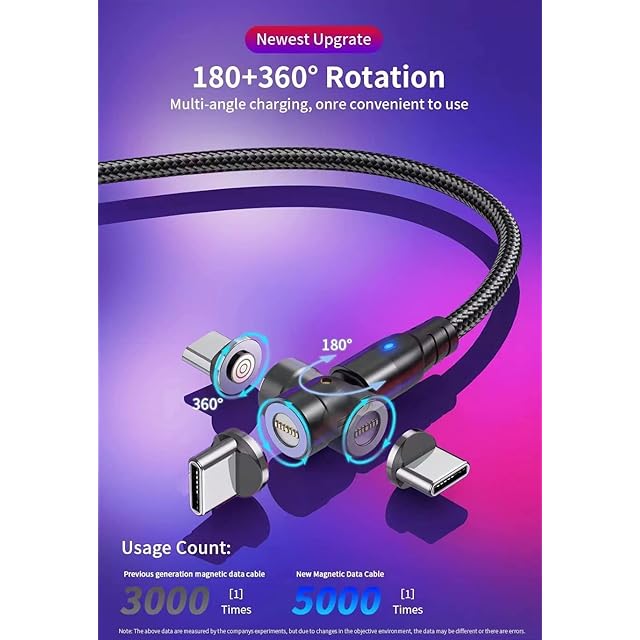 [LOEKU] 磁気360度+180度回転 Type C USB PDケーブル 【PD-60W対応/20V/3A】急速充電対応 防塵 着脱式 高耐久ナイロン 断線防止phone MacBook AIR/iPad Pro/Galaxy Sony/Switch/Xperia/Galaxy/Google Pixel 等機種対応 (1M)