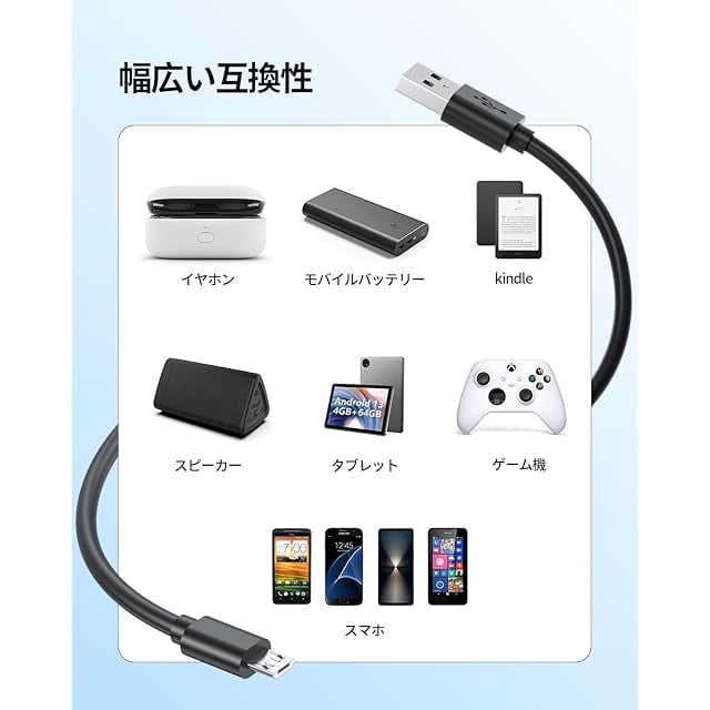 [抜群な耐久性] ケーブルは高品質素材を採用。優れた強靭さと耐久性を実現しただけでなく、全体は柔らかくて取り回しやすく、絡まりにくい。さらに、強化されたコネクタ仕様で、断線しやすい根元部分をしっかり守り、コード寿命を延ばします