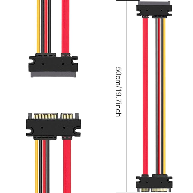 完璧なケーブル長: 22 ピン SATA データと電源を組み合わせた延長ケーブルの全長は 50cm 20 インチで、周辺機器 (ドライブなど) を簡単に配置できます。