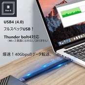 【40Gbpsデータ転送】USB4フルスペックで最大40Gbpsのデータ転送を対応します。Type-Cに対応したスマホ、SSD、ノートPC、タブレット、ゲーム機及びその他のUSB-Cデジタル端末に充電とデーター伝送します。