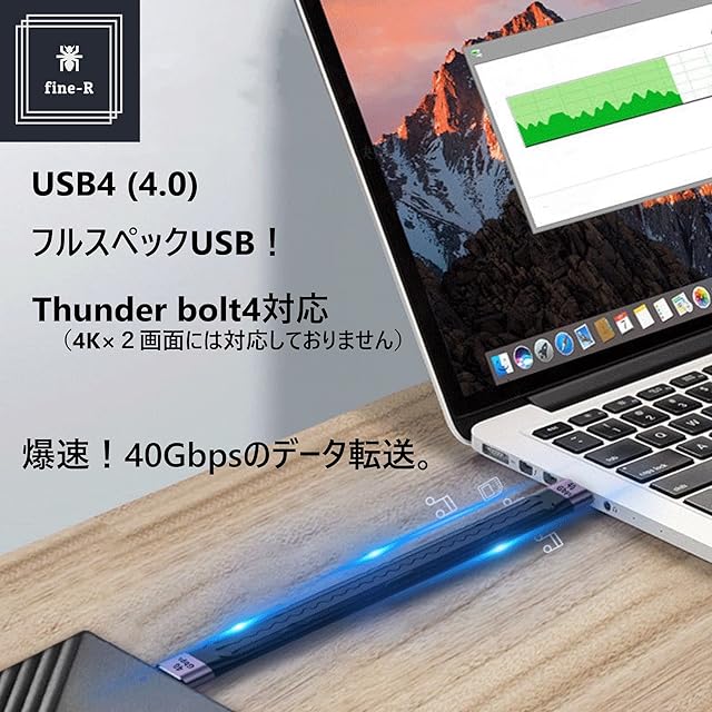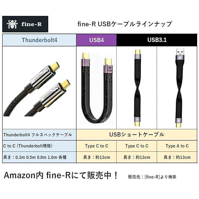 fine-R USB4 type CtoC ケーブル 40Gbps 高速データ転送 8K 映像出力 PD充電 最大 20V/5A 100W 約13.8㎝ 短い USBケーブル フラットケーブル (PL保険加入品) (short 40G CtoC) | AVENIR