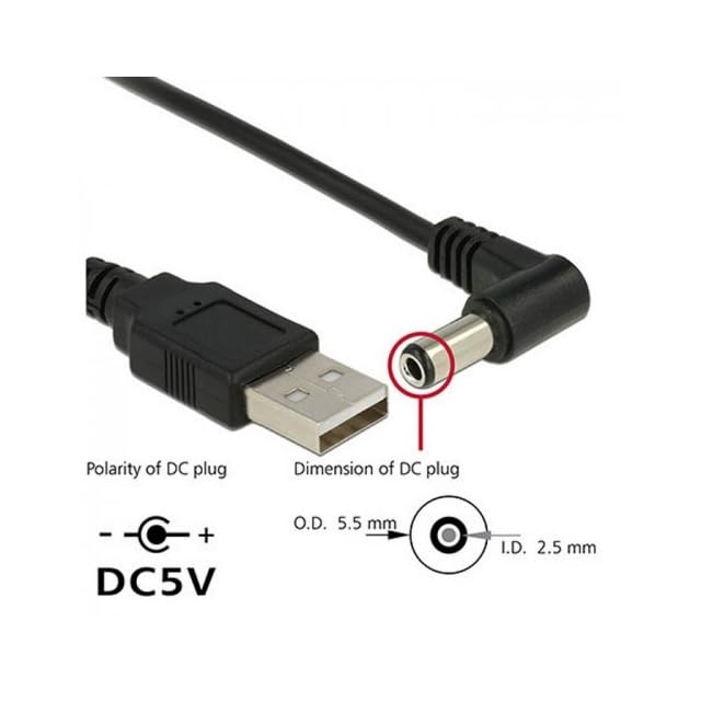 CY USB 2.0 Aタイプ オスから右角度 90度 5.5 x 2.5mm DC 5V 電源プラグ バレルコネクタ 充電ケーブル アプローチ 80cm