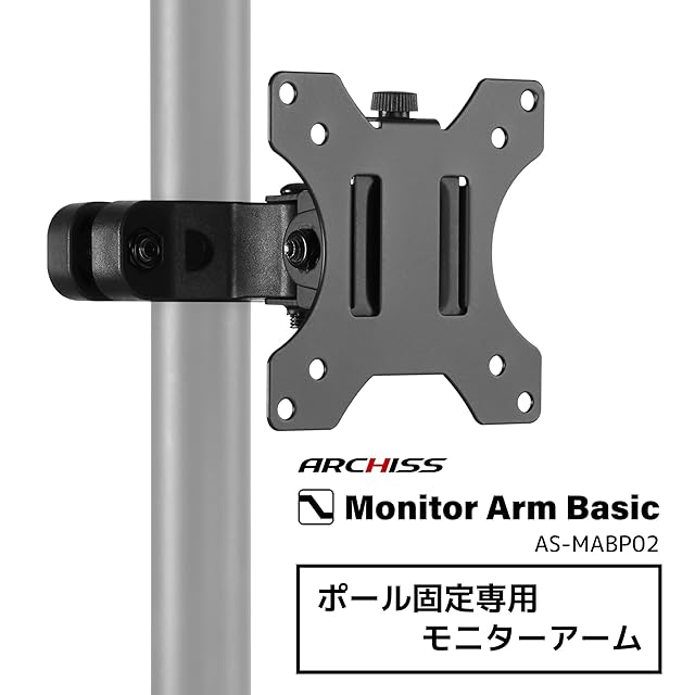 【メタルラックやポール用のモニターアーム】メタルラックや既存のポール(丸パイプ)に固定するタイプのモニターアームです。最大で6kg、32インチまでのモニターに対応します。 ※取り付けるポール(丸パイプ)が本製品+モニターの重量を支えられるか確認した上、取り付けてください。
