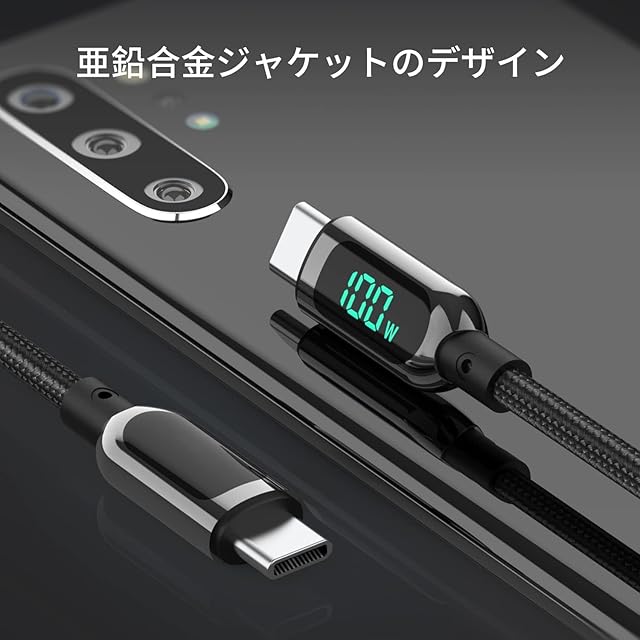首佩 LEDディスプレイ高耐久ナイロン USB-C & USB-C ケーブル 100W PD対応 MacBook Pro/Air iPad Pro iPad Air 4 Galaxy S20 Pixel LG 対応 (1.2m 1.2m, Black) | AVENIR