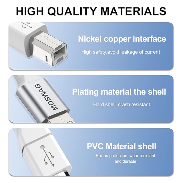 【USBプリンタケーブル】MOSWAG USBプリンタケーブルは、スキャナ、プリンタ、サーバ、カメラ(HP、Canon、Lexmark、Epson、Dell、Xerox、Samsungなど)などのUSB Bデバイスをノートパソコン、パソコン(Mac/PC)またはその他のUSB対応デバイスに接続するための理想的な選択です。