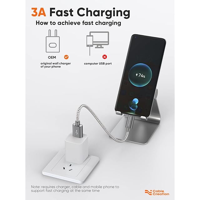【3A急速充電&データ同期】最大3Aの出力電力、急速充電(QC)をサポートします。本短いUSB充電ケーブルは、最大480Mbps(= 60MBps)のUSB 2.0データ速度をサポートします。ご注意:弊社の本USBケーブルはハードドライバにご接続することはお勧めいたしません。ハードドライバ接続専用の5G/10Gusb-cケーブルが必要です(参考のため、ASIN:B013G4CHDE / B072M7GH29 / B08RDF16VVをご参照願います。)