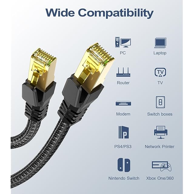 【互換性が高い】CAT8 ランケーブルは、従来のCAT5eやCAT6と同じRJ45コネクタを使用しています。そのため、既存のインフラストラクチャに簡単に統合することができます。高速CAT8 イーサネットケーブルは、CAT7、CAT6、CAT5、CAT5Eケーブルなどと下位互換性があります。ADSLモデム、CATV回線、光通信回線、ISDN回線に対応、パソコン、ルーター、PC、スイッチ、サーバー、PS3、PS4、PS5、XBox、ハブ、NAS、TVbox、VoIP電話など、RJ45コネクタを搭載するすべてのデバイスに適用します。