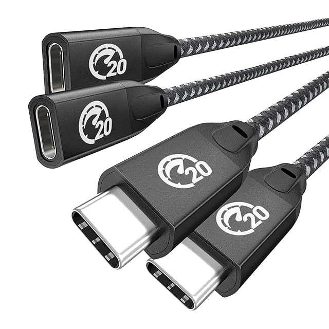 UseBean USB C延長ケーブル 0.3M [2本セット], 4K映像出力 USB-C 3.1 Gen2 20Gbps高速データ転送 PD 100W急速充電 USB C オス-メス タイプc延長コード iPhone 15, MacBook, iPad Pro, Dell XPS, Galaxy S24, Steam Deck, Nintendo等USB-C機種対応 | AVENIR