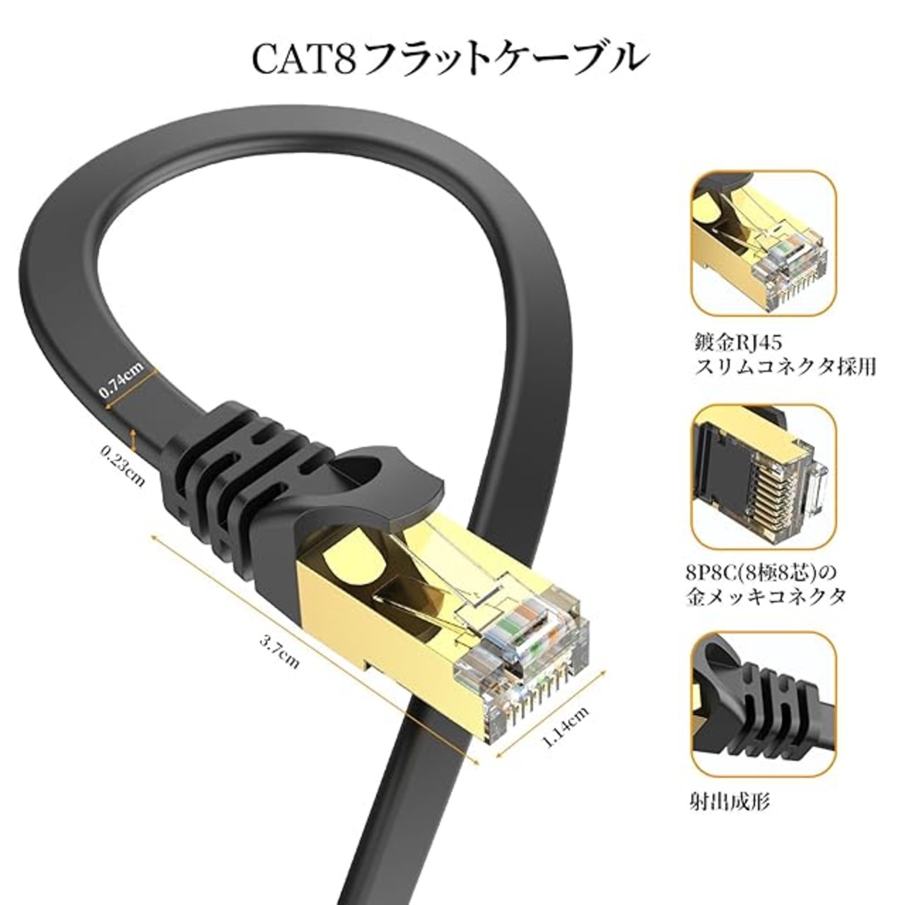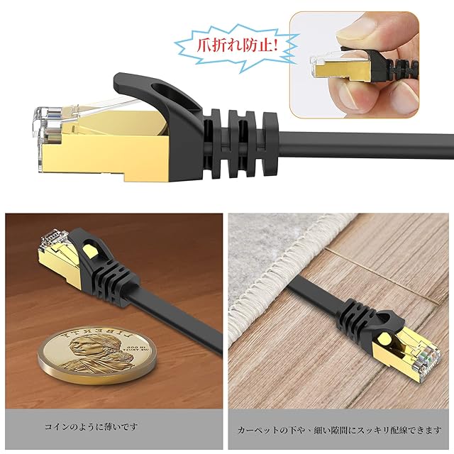フラットデザイン:薄さ0.23cmの超薄型フラットデザインのLANケーブルでスペース節約します。超薄型デザインで絨毯の下、戸の隙間等のところで自由に配線でき、軽くて収納 にも便利
