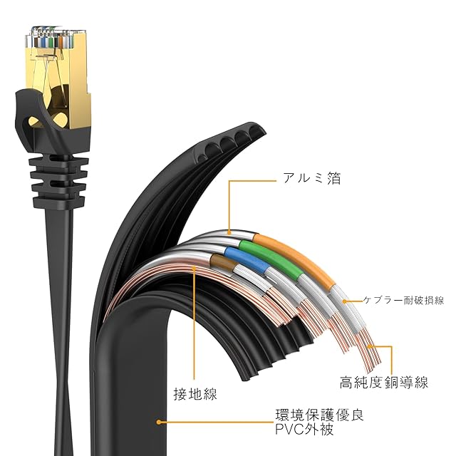 lanケーブル cat8 50m PINKANG 高速 カテゴリー8 フラット ランケーブル 爪折れ防止 シールド モデム ルータ PS5 PS4 Xbox等に対応 屋外 業務 ゲーム用(50m, ブラック) | AVENIR