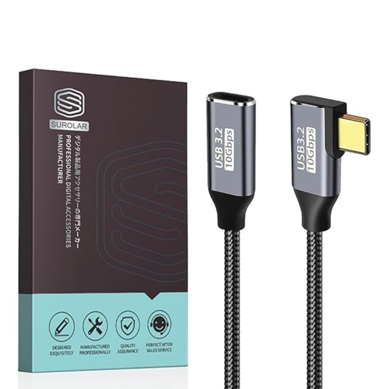 USB-C & USB-C 延長ケーブル L字 0.25M Type-c 延長 USB3.1 Gen2(10Gbps) 100W PD急速充電 高速データ転送 超高耐久ナイロン タイプc 延長コード Type-c機種対応 (0.25M) | AVENIR