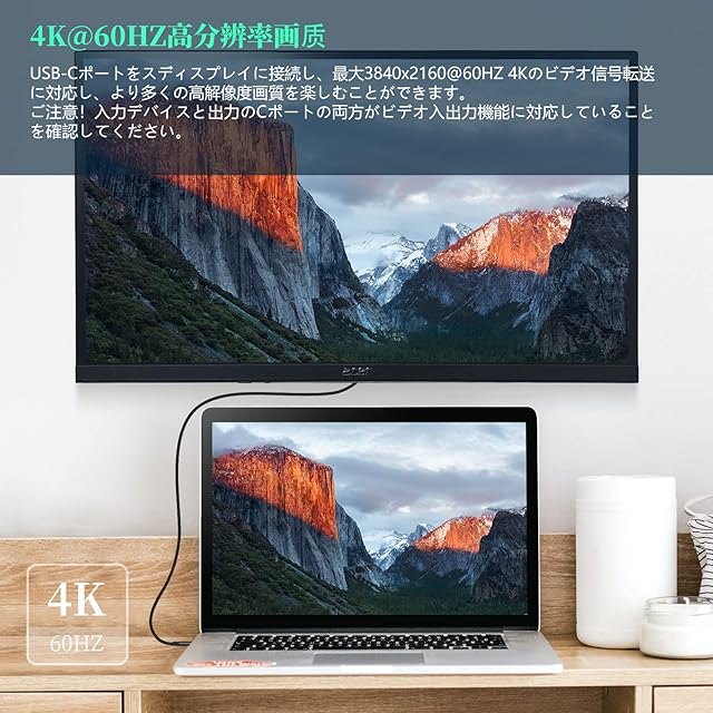 【4K@60Hの高解像度ビデオ出力に対応】USB type C ポート出力に対応するディスプレイに接続し、最大3840x2160@60HZ 4Kのビデオ信号転送に対応し、より多くの高解像度画質を楽しむことができます。ご注意:入力デバイスと出力のType Cポートがビデオ入出力機能に対応していることを確認してください。