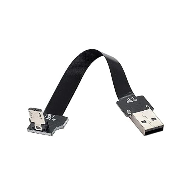 NFHK ダウンアングル USB 2.0 Type-A オス - マイクロUSB 5ピン オス データ フラット スリム FPC ケーブル FPV & ディスク & 電話用 20cm | AVENIR