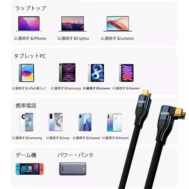 高品質と安全性:厳格な耐久性テストを経て、このデータケーブルは高品質の素材で作られており、耐摩耗性と耐ねじれ性に優れています。エルボの設計により、プラグの抜き差し時の曲げ損傷を効果的に軽減し、耐用年数を延長できます。高耐久ナイロンを織り込んでいるので絡まりにくく扱いやすく、機能性とデザイン性を兼ね備えています。過負荷保護、過熱保護、短絡保護などの複数の保護メカニズムが組み込まれており、下位互換性があり、デバイスを潜在的なリスクから効果的に保護し、充電中やデータ送信中の安心感を高めます。