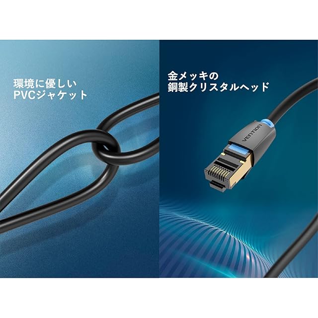 VENTION Lanケーブル Cat.8 SSTP RJ45 コネクタ ギガビット 40Gbps 2000MHz ツメ折れ防止 テレビ プロジェクター モニター ルーター パソコン タブレット PS5 PS4 Xbox対応 (0.5m / IKABD) | AVENIR