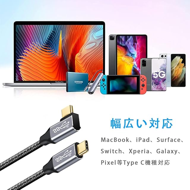 【幅広い対応性】USB-Cに対応したスマートホン、ゲーム機、パソコン及びその他のデジタル端末に対応します。MacBook Pro 14" 2021、MacBook Pro 16"、MacBook Pro 15.4"、MacBook Pro 13.3"、MacBook Air 2018-2020、MacBook 2015-2017、iPad Pro 2018-2020、iMac(2020)/iMac Pro/Mac mini(2018)、Switch、Xperia、Galaxy、Pixel等Type C機種対応。