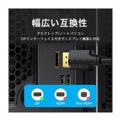 【このような特徴があります】 1本のケーブルで映像や音声、制御信号を伝送できる特長を持ち、高い解像度に対応しています。一般家庭用として普及しているディスプレイケーブルの中では最高性能で、もっとも高い解像度を出力することが可能です。 パソコンモニターを中心に搭載しています。そのため、高解像度モニターに合わせてDisplayPortを活用するシーンも増えつつあります。ただし、DisplayPortの端子が付いているのはパソコンモニターに多く、一般的なテレビにはほとんど付属していないためご注意ください。 HDMIのようなテレビやモニターに用いられる規格に比べると、機器が制限されます。 没入型4K3D効果/トリプルシールド/21.6Gbps帯域幅