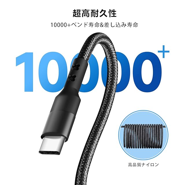 【高耐久性&安全性】被覆は高品?ナイロンが採用され、高弾力性、電気絶縁性などの特性を持っており、手触りが良くて、充電安全も確保できます。