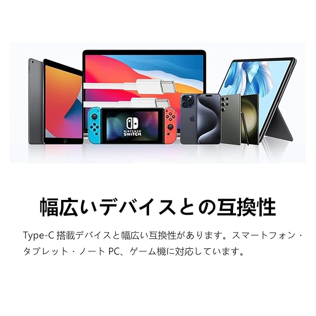 【幅広い互換性】USB Cポートを備えたスマートフォン・タブレット・パソコン・ゲーム機など、幅広い機器での充電やデータ転送におすすめです。