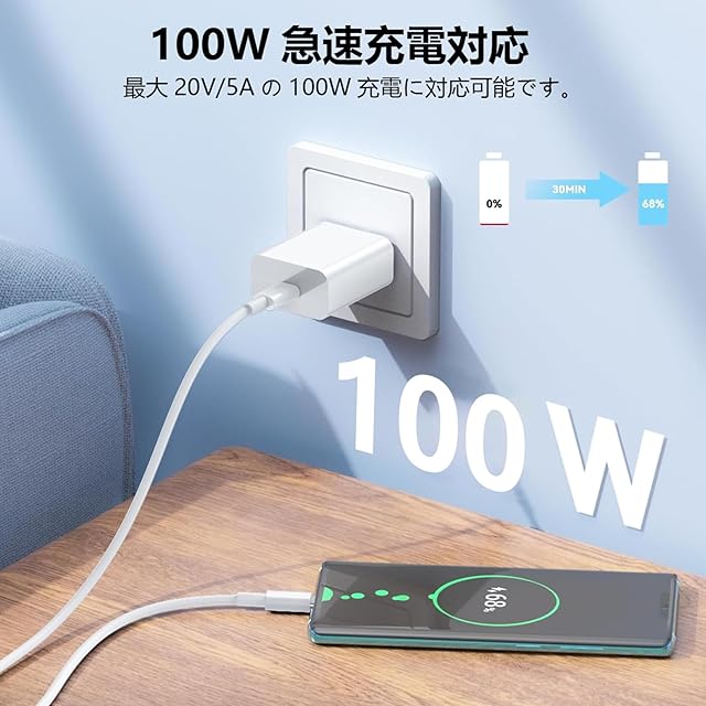 【最大100Wの超高速電力供給】最大100W (20V/5A)まで安全かつ安定して出力できます、の出力をサポートし、スマホ・タブレット・PCなどの充電時間が大幅に短縮されます。普通60Wのケーブルより58%速くなります。(注:PD充電を実現するため、デバイスと充電器がPD機能に対応する必要があります、実際の充電速度は、お使いの機器や充電器によって異なります。ビデオ出力には対応していません)