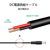 【DC電源供給ケーブル】:本商品はUSB オス to DCプラグ、最大3アンペア、 外径5.5mm内径2.1mmの5V DCケーブルです。ケーブル長 約 1.5m。数量:2個