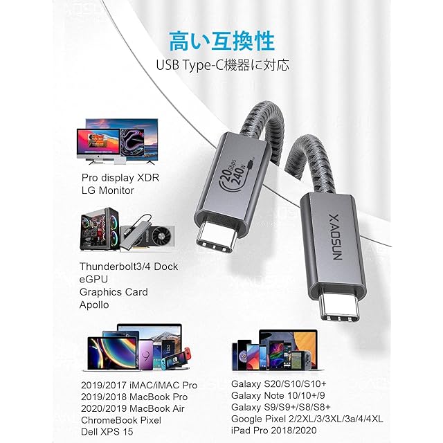 XAOSUN USB Type C ケーブル 240W PD3.1 充電 USB 3.2 Gen 2x2-20Gbps データ転送 4K@60Hz 映像出力 1M usb type c ケーブルMacBook/MacBook Air、iPad Pro、Type c 対応 | AVENIR