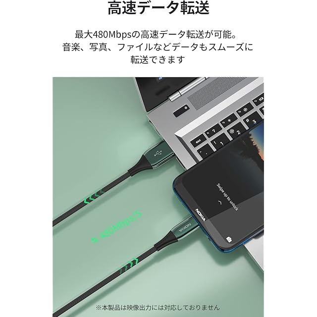 480Mbpsデータ転送:スマホなどの充電はもちろん、データ転送にも対応します。データの転送速度は最大480Mbpsです。別のデバイスと接続すると音楽、写真、ファイルなどが転送やバックアップ可能です。※本製品は映像出力には対応しておりません。