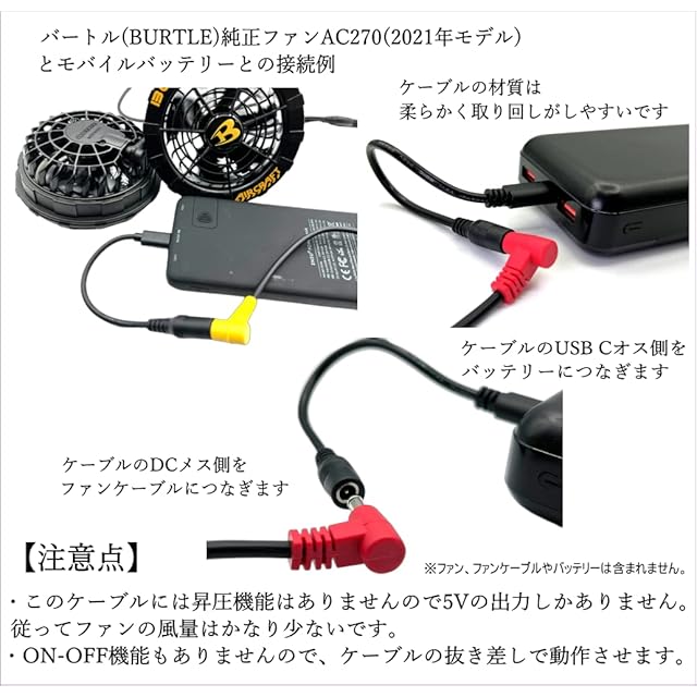 マ キタのファン付き作業服 旧型ファンA-67527(2020年以前モデル)をモバイルバッテリーから給電できるようにするUSB変換ケーブルです