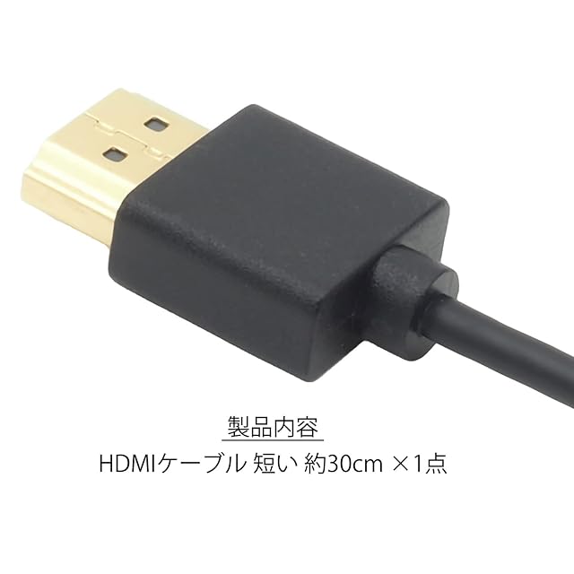 スリムケーブルを採用し、スッキリとキレイな配線が可能 短いケーブル<br />4K@60Hz/2K@144Hz/2K@165Hz/HDR・HEC(イーサネット通信)/フルHD/3D映像/ARC(双方向音声)/CEC(基本リンク機能)・高速伝送18Gbpsなどに対応<br />全長 約30cm ケーブル長 約25cm ケーブル径 約3.5mm<br />●製品内容 HDMIケーブル 短い 約30cm ×1点<br />●保証期間 お届け日より1ヶ月