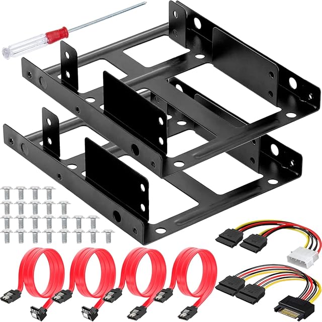 Xiatiaosann 2.5 3.5インチHDD SSD変換 マウンタ SATAインターフェース内蔵 HDDケース 3.5インチ 変換ブラケット、PC用 ssd マウン、金属製 SSD 変換ブラケット、SATA 3.0 データ & 電源ケーブル付き、2 個HDD ブラケット